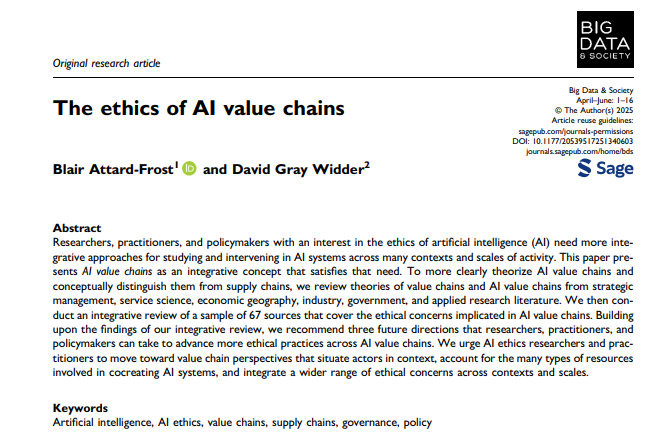 AI systems integrate many resource inputs and outputs across global value chains. This research analyzes the ethics and governance of those value chains.